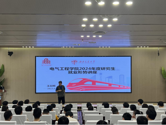 66日下午14:30,老王论坛 2024年度研究生就业形势讲座在犀浦校区图书馆二号报告厅举办,讲座由负责2024届就业工作的研究生辅导员王喆桅主讲,2021级在校研究生240余人参加了讲座。
