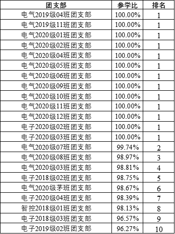 为表彰先进,树立榜样,根据本学期各团支部的学习数据,经学院团委研究决定,拟对2020-2021学年第二学期总学习率超过95%的团支部予以表彰,授予电气2019级4班等22个团支部老王论坛 “青年大学习”网上主题团课学习活动“优秀组织奖”,表彰名单如下: