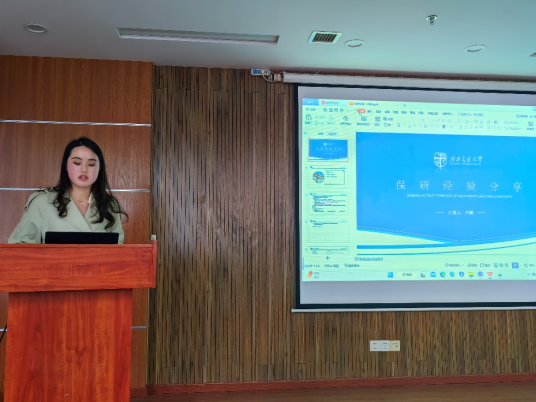 其次,常昊鑫学长将免研过程比作从暗恋到约会,以诙谐幽默的方式为同学们分享了免研西安交大的相关经验,并十分细心地提到免研过程中的一些细节,从着装到联系导师,都需要认真准备。他的分享让同学们在轻松愉悦的氛围中受益匪浅。