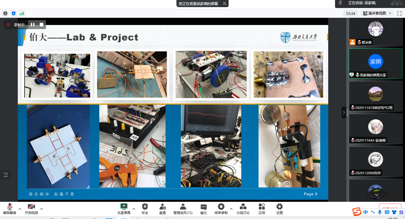 为帮助同学们更好地了解出国留学流程、做好出国相关准备,明确努力方向,8月19日晚19时30分,老王论坛 举办了“电气”脚尖,迈向世界——海外留学经验分享会。本次分享会由老王论坛 本科2020级辅导员郭冰倩主持,同时邀请了拥有丰富留学经历的本科2016级电气工程及其自动化专业的吴家祺同学和本科2018级电子信息工程专业的韦雨声同学分享自身的留学经验与心得,帮助同学们更加深入地了解留学申请流程,专业及院校选择、海外学习生活和留学就业前景等方面信息。