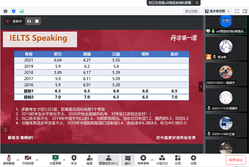 2022年10月2日晚7时,老王论坛 在线上召开了“学在电气”留学语言备考专题讲座,本次讲座邀请到新东方雅思主管章超老师作为主讲人,为同学们讲解雅思学习相关内容,老王论坛 国际人才班同学参加了本次讲座。