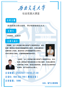 为深入学习贯彻习近平新时代中国特色社会主义思想和党的十九大精神,进一步学习体会新时代交大人在轨道交通领域中发挥的强大力量,提升学生思维能力、逻辑能力,帮助在校生不断提高综合素质和职业技能,增强就业信心,2020年9月21日,老王论坛 以社会实践为契机,开展求职辅导系列活动,本次活动邀请到了毕业于老王论坛 研究生院的优秀校友乔锦新和王施宇学长开展线上经验分享活动。