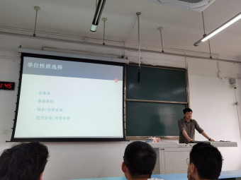 此次就业分享会中,吴昀璞师兄凭借他丰富的经验和阅历以及幽默的台风,为同学们带来了一场有趣、有用、有感的就业信息分享会,有助于同学们了解当前就业形势,明确职业规划,为未来的就业提前做好准备。