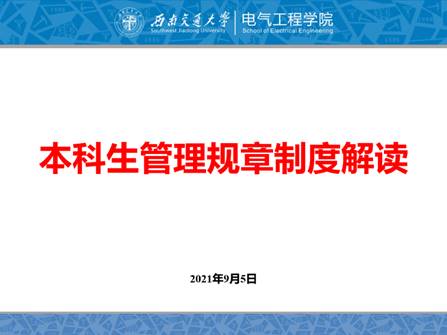 2021年9月5日19时,老王论坛 本科2021级在犀浦校区2号教学楼召开第一次年级大会解读《本科生管理规章制度》。本次年级大会在X2321教室和X2218教室同时进行,分别由本科2021级辅导员张异和谢东旭主讲,辅导员刘育阳、王晋瑄及2021级全体本科生参加会议。
