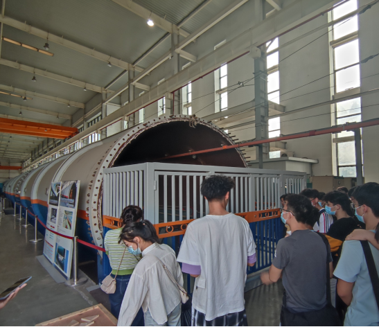 最后同学们来到了真空管道高温超导磁浮车高速实验台,令同学们赞叹的是超导磁浮在100m的管道中能够加速到400km/h,目前实验速度已经能够达到350km/h提到目前面临的杜瓦持续保温能力弱的问题,王博士鼓励同学们努力学习,未来加入科研团队为母校和祖国献出一份自己的力量。