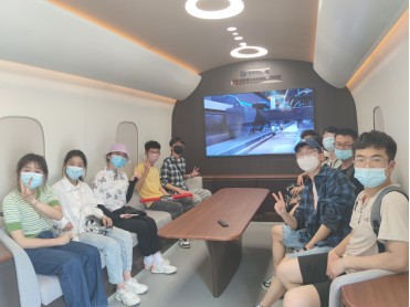 首先, 实验室的王潇飞博士用视频的形式简明介绍了高温超导磁悬浮的动力来源、学科特点,运用液氮展示了高温超导的原理,并带领同学们参观了高温超导磁悬浮工程化样车及试验线,展示了样车外部机械构造内部结构样车采用全碳纤维轻量化车体、低阻力头型、大载重高温超导磁浮技术等新技术和新工艺,设计时速620千米每小时;而且由于高温超导体自身的钉扎特性,将保持车体上下左右稳定,实现其他交通工具难以达到的平稳性,乘客乘坐舒适度高。