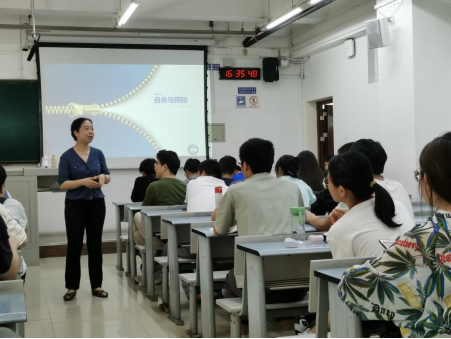 紧接着,高飞老师着重解读“自杀与预防”,指出“自杀”的理解误区,引导大家积极对身边同学的心理以及行为变化进行观察与思考,重视他们反常的行为,正确地为他们提供帮助,同时及时告诉辅导员老师及心理中心的老师,和老师们一起为有自杀倾向的同学提供帮助,将他们带出阴霾。