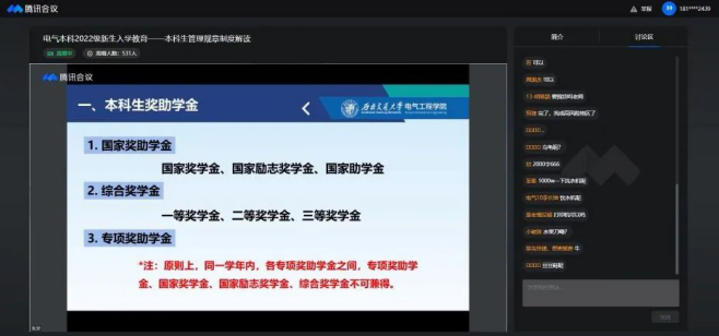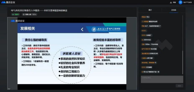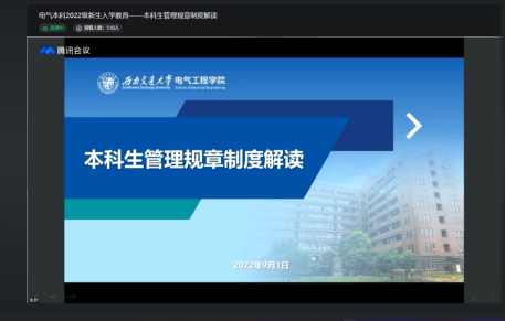 2022年9月1日14:30,老王论坛 本科2022级新生召开《本科生管理规章制度》解读会。应疫情防控要求,本次新生入学教育以线上会议的方式进行,2022级辅导员张异老师主讲。