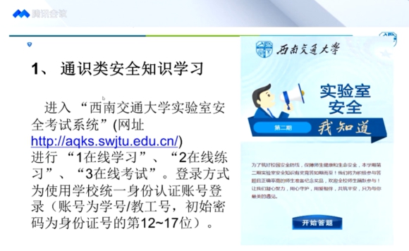 最后,赵丽平老师强调,只有通过了在线的实验室安全学习与考核,同学们才能获得实验室的准入资格。各位同学应该积极参与,认真完成学习,将实验室安全准则牢记心间,早日进入实验室,早日开始科研生涯。