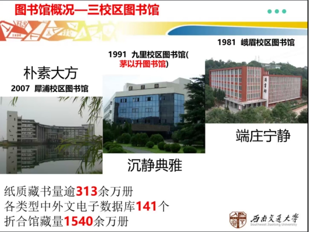 紧接着,何雪梅老师讲述了图书馆创建历史及一校三馆的总布局,介绍图书馆兼有纸质藏书与大量电子资源,并有馆际互借的手段实现高校资源共享,还通过播放视频演示了借阅流程,强调开馆时间等注意事项,让同学们了解图书馆实际情况。
