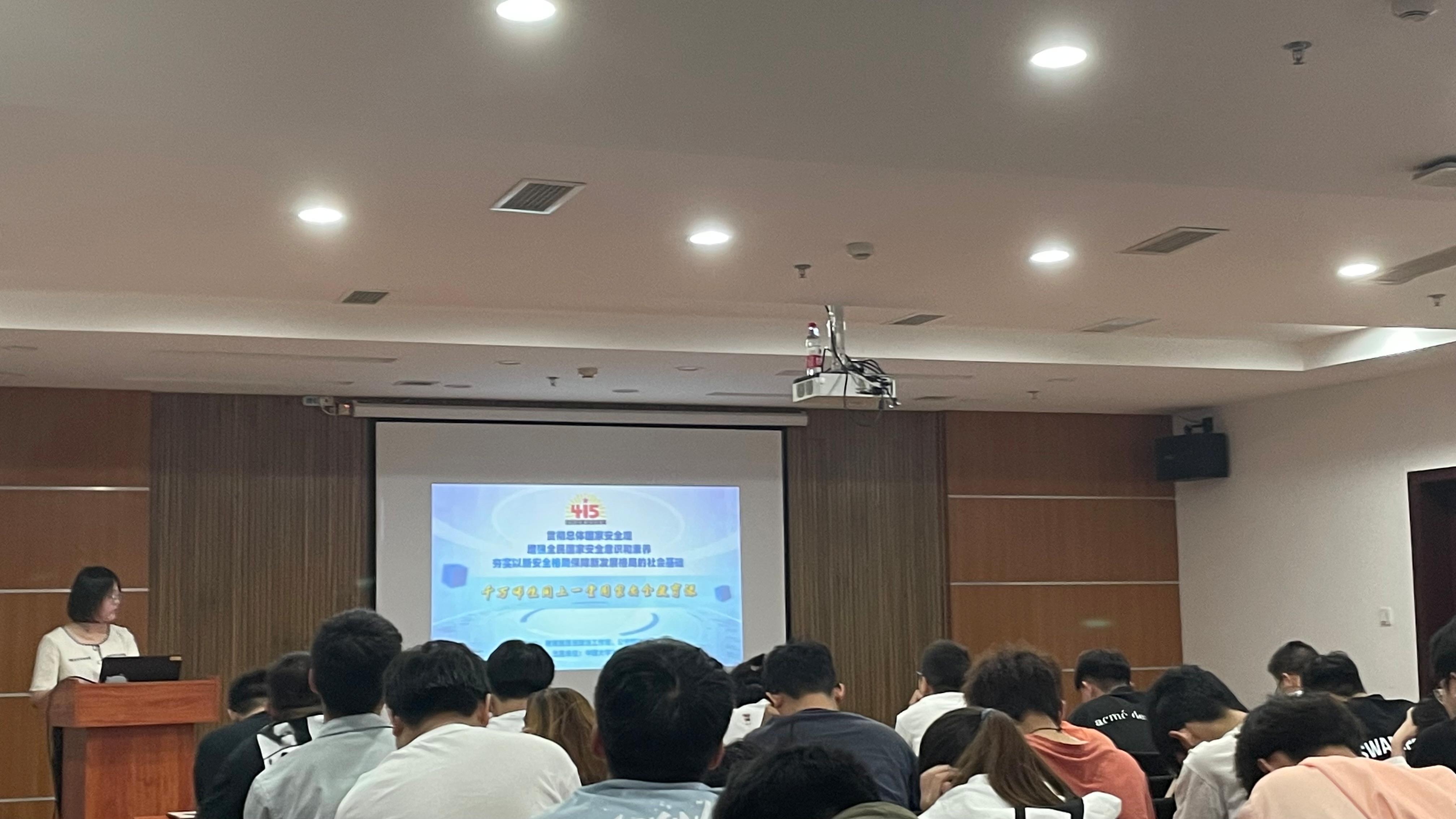 第二阶段,郭冰倩组织与会成员共同观看国家安全教育公开课“千万师生同上一堂国家安全教育课”。该课程结合高校实际,以生动、真实的案例从反奸防谍、反诈防骗、网络安全三个与国家安全息息相关的领域进行详细讲授。通过真实案例,同学们认识到国家安全无小事,保密是公民的义务,也更加切实深刻地认识到树立国家安全观的重要性。通过专家讲解,同学们了解到了许多生活中隐藏的安全漏洞及有效避免的方法,对于进一步增强保密意识,维护国家安全具有重要作用。