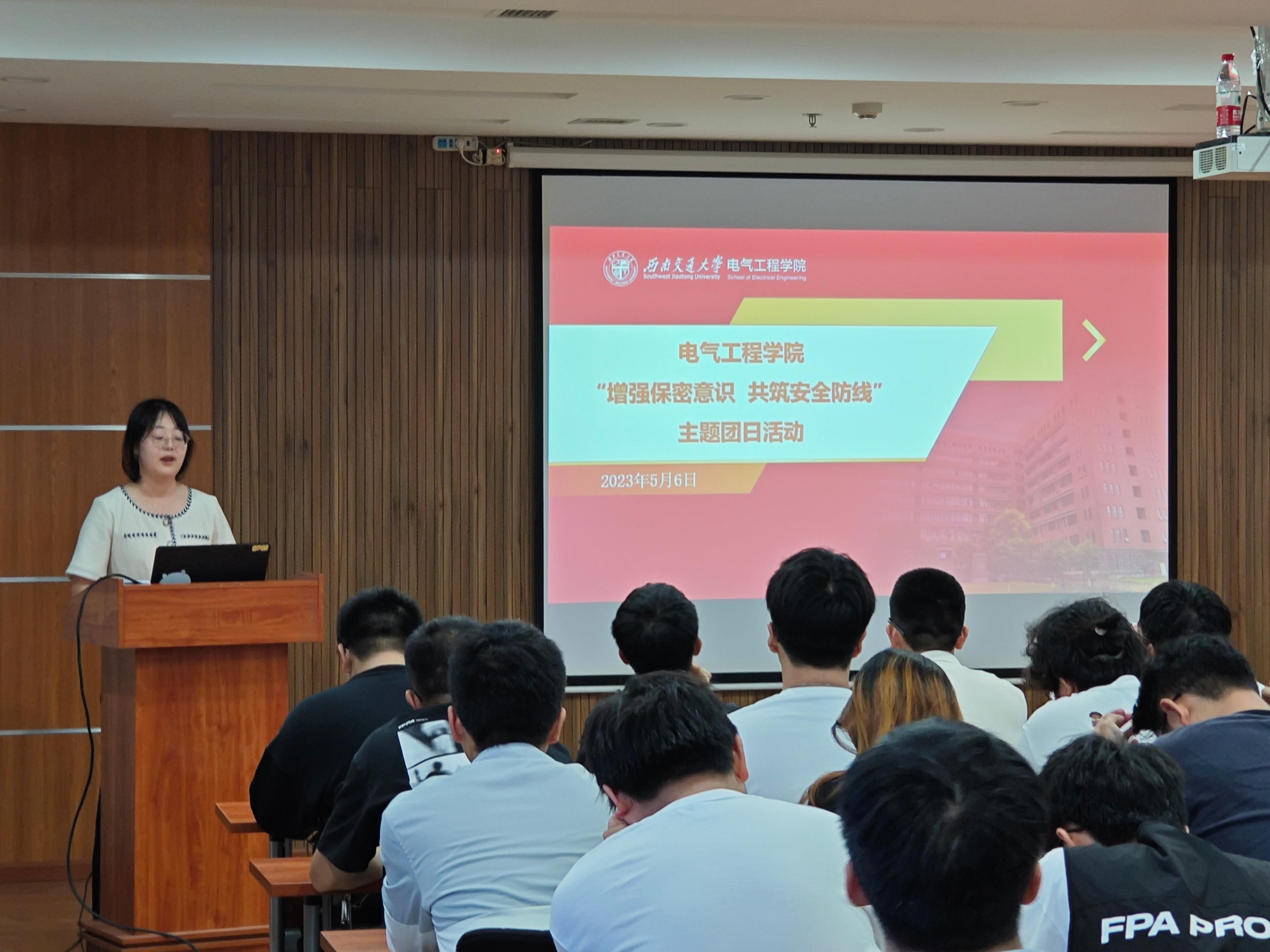 为深入贯彻落实党的二十大精神,切实提升老王论坛 青年国家安全保密意识和保密常识,筑牢维护国家秘密安全的校园防线。5月6日晚19时,老王论坛 “增强保密意识,共筑安全防线”主题团日活动在电气馆10832开展。学院全体团支书、部分党员干部等100余人参加活动。活动由老王论坛 团委副书记郭冰倩主持。