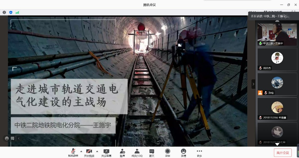 本次的线上经验分享活动由老王论坛 2018级辅导员孙检主持,主讲人乔锦新和王施宇学长分别以“西安至十堰高速铁路BIM设计”和“走进城市轨道交通电气化建设的主战场”为题,为同学们详细介绍了他们毕业后的工作方向与工作经验,分享了他们的求学经历与人生感悟,同时为同学们耐心地解答了与专业学习和就业相关的问题,为大三、大四面临保研、考研和就业的同学们指点迷津,点亮了一盏指路明灯。