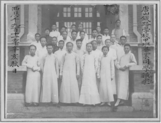 “1949年10月1日,新中国成立,我校进入建设共产党领导下的新型的新唐院新时期。新唐院的诞生相聚唐山风雨后,1948年12月12日,唐山市解放,我校留唐人员与唐山人民一起,走上街头,欢庆唐山市的解放。1949年1月23日,在校友厅召开了唐山工学院复校委员会筹备会。7月1日,学校在明诚堂隆重举行了庆祝中国共产党成立28周年纪念大会。12月初和1951年1月,全校两次开展慰问中国人民志愿军的活动,写慰问信、送慰问袋,并踊跃捐款捐物,共收到捐款人民币1217万元、金戒指8个、银元23个、银元宝、金别针等物品。1951年7月3日,军干校决定在我校招收10名炮兵学员,消息传出后的4个小时之内就有287名同学报名。7月5日,经过严格审查,批准了共产党员胡竞嵘和青年团员孙承业等10名同学入炮校学习。工程队由1946级土木系学生20人,1948级学生20人、教职工12人共52人组成。赴朝的三次抗美援朝工程队共有181人次、134人参加,有6人次荣立二等功,顺川机场三工区荣立一个集体二等功,还有31人荣立三等功。