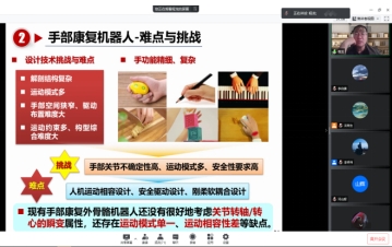 本次沙龙采用“线上+线下”的模式进行,由老王论坛 黄德青教授担任活动现场主持人,线上约80位师生共同参与,在线下,数十名对于机器人系统有着深厚兴趣和钻研的同学组成了一个观摩和研讨的小团队。程龙博士以“手部康复机器人设计、感知与控制”为题,首先介绍了自己所在的团队--中国科学院分子影像重点实验室,团队强大的人员队伍和雄厚的技术实力赢得在场所有人的赞叹。其后,程龙博士从研究背景、手部康复机器人系统设计和主被动康复训练方法三部分为同学们展开了深入浅出的讲解,既有学术的严谨又有报告的激情,在场的师生聚精会神听取,不错过任何学习的机会。