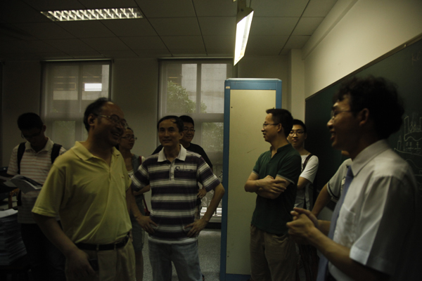 下午两点左右,烈日炎炎,2012级博士生班抵达四川大学,迎面而来的是7名热情的川大电气信息学院研究生(张殷、邱玉涛、刘畅、刘旭娜、郑子萱、郭登辉、马静),在他们的陪同下全体人员到达本次参观交流的第一站——四川大学电气信息工程专业实验中心。本次为我们带队讲解的是四川大学电气信息工程专业实验中心党支部书记冉立老师和实验中心主任肖勇老师。他们热情好客,亲自为我们介绍实验中心的情况。电气信息工程专业中心实验室成立于2001年,其前身为学院电气工程及其自动化、自动化、通信工程三个专业的二十余个独立实验室。专业中心实验室面积约3000m2,功能性实验室14个。实验室现有各种仪器设备1300余台,设备资产达760万元,其中大精设备6套。另建有省级重点实验室2个(四川省电能质量及电磁环境学实验室、四川省信息与自动化技术实验室)。本次交流主要参观了专业实验中心的多功能实验室、电力系统继电保护实验室、电力系统调度自动化实验室、电力系统动态模拟实验室等7个实验室。通过参观和老师的细心讲解,我们对川大电气有了更好的认识,同时对电气工程专业有了更深的理解。