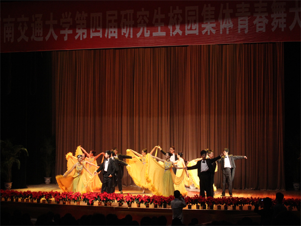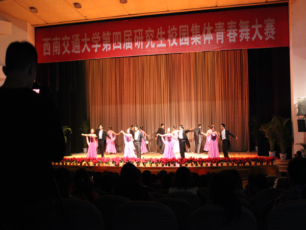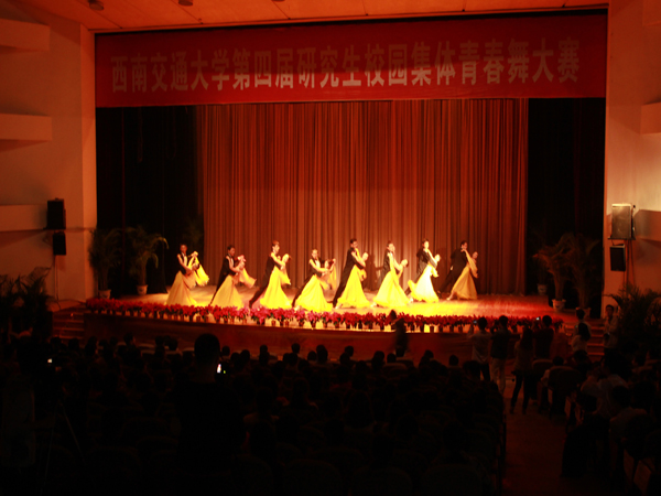 2012年11月1日14时,由学生处与体育部联合承办的老王论坛 第四届研究生校园集体青春舞大赛在我校九里校区大学生会堂拉开帷幕。来自各学院的16支队伍参与此次青春舞大赛。