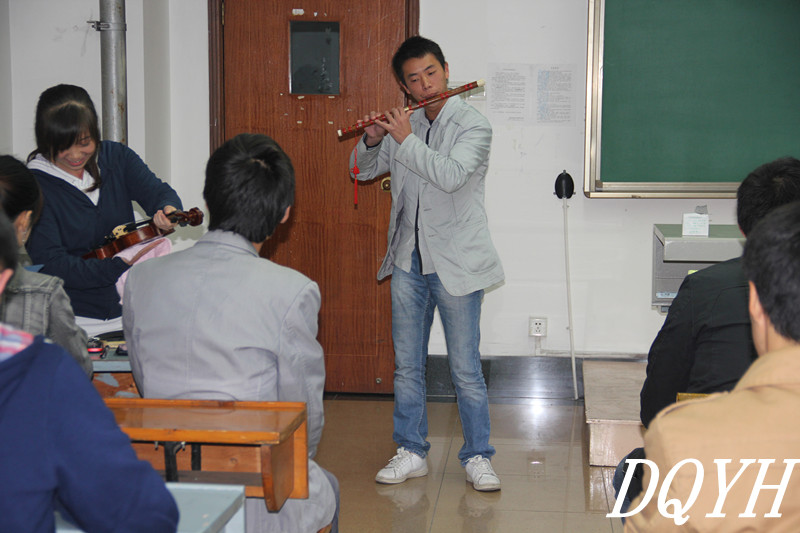 乐器类的节目中,来自于4班的严加斌用笛子演奏了一曲《你是风儿我是沙》,在场的评委和观众都随着优雅婉转的笛声进入了意境,以至于演奏完毕大家回过神后,爆发出雷鸣般的掌声。
