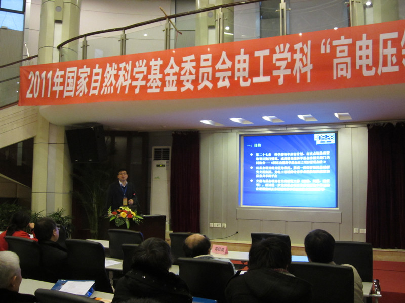 1月9日上午8:30,2011年国家自然科学基金委员会电工学科“高电压领域”项目交流会在我校九里校区镜湖宾馆多功能厅拉开帷幕。国家自然科学基金委员会电工学科部主任丁立健教授,清华大学,西安交通大学,重庆大学,哈尔滨理工大学,中国科学院电工研究所等23所高校与研究所代表出席了此次项目交流会。我校副校长彭秋实教授,我校老王论坛 院长高仕斌教授,我校高电压学科带头人吴广宁教授也出席了此次交流会。会议由我校老王论坛 院长高仕斌教授主持。