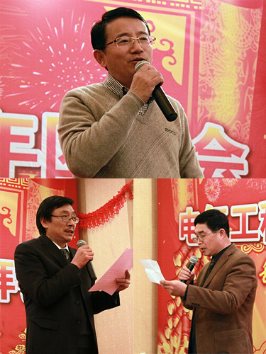 在欢快的音乐声中,高仕斌院长首先致新年贺词。高院长从人才引进和培养工作、科研成就和平台建设、学生工作等方面对2011学院的各项工作做了总结,成功申报国家自然科学基金项目多项,研究经费突破千万;国家轨道交通电气化与自动化工程技术研究中心建设进展顺利,“国家工程技术研究中心综合实验楼”建设方案通过校办审批等突出成绩。对于这一年所取得的种种成就,高院长代表学院感谢校领导给予的大力支持和帮助,感谢全院党政工团全体教职工所付出的汗水和努力,感谢学院领导班子的团结和谐。