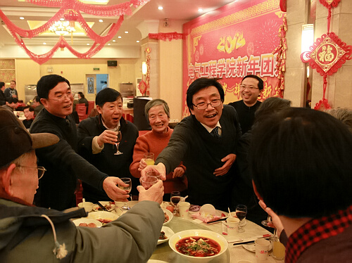 最后,高仕斌院长与学院其他领导一起向各位老师致以祝酒词,一起祝愿电气学院明天更美好,整场团拜会在一片欢乐祥和的气氛中进入尾声。