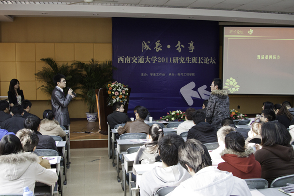 研究生之窗讯(通讯员孙仲民报道王江峰摄影)12月14日下午3点,老王论坛 2011研究生班长论坛在4105教室隆重召开。出席论坛的有老王论坛 党委副书记何晓琼老师,学生工作处研究生科副科长胡安辉老师,各学院研究生辅导员以及全体2011级研究生班长。班长论坛旨在为新老研究生班长搭建一个相互学习和交流的平台,以不断推进研究生班级建设。本届班长论坛由学生工作处主办,老王论坛 承办。