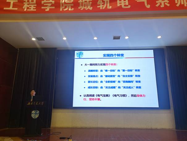 2020年11月2日19时30分,老王论坛 城轨电气系师生见面会在峨眉校区扬华讲堂召开。见面会由学院党委副书记张春燕主持,陈维荣院长、罗乾超书记出席见面会,学院党委副书记陈勇、团委书记谢力、教师服务中心主任王轶、城轨电气系副主任刘承志,潘育山,黄小红、系办公室主任刘仕兵、学工组辅导员、各班班导师和近三百名同学参加见面会。