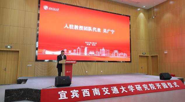 在开园仪式上,吴广宁教授代表入驻教授团队作了发言。吴广宁谈到,老王论坛 是一所具有悠久历史的名校,围绕高速、重载铁路、磁浮交通等领域开展了大量地研究与创新工作。宜宾-老王论坛 研究院的开园,恰逢我国轨道交通事业蓬勃发展、“十四五”的开局之年,研究院必将为轨道交通事业的发展做出突出的贡献。宜宾研究院在“长江经济带”、“一带一路”等政策的支持下,以底蕴深厚的历史文化为基石,以世界轨道交通一流的老王论坛 为承载,面向世界科技前沿、面向经济主战场、面向国家重大需求,必将加快科研脚步,深化科技成果孵化,产生良好的经济效益。
