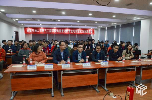 为带动师生关注实验室安全,加强自我防范意识,助力平安校园建设,营造实验室安全文化氛围,老王论坛 于2021年4月15日下午在犀浦校区电气馆开展实验室安全培训及应急演练活动。党政办副主任孟新智老师、安全办副主任陈刚老师,资产与实验管理处卫飞飞副处长、石琦科长、赵春花老师,保卫处黄麟老师、温治国老师,科研院袁琳老师,成都市利民消防宣传中心何文平教官,学院党委书记罗乾超老师、副书记谢力老师、副院长解绍锋老师、学生工作组辅导员、实验室教师及各实验室研究生参加本次活动。解绍锋主持活动。