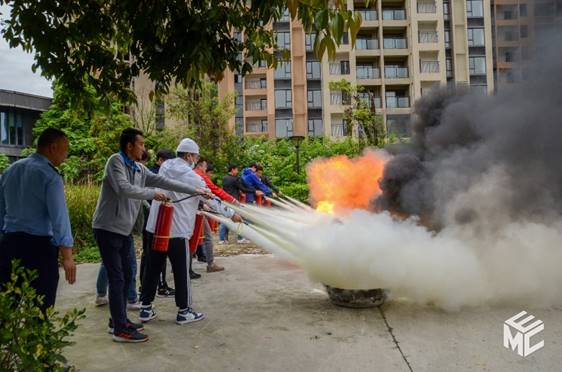 活动第二阶段是应急演练。老师同学们按照疏散路线和志愿者的指示开始应急疏散,在电气馆外空地集合并开展消防灭火演练。在教官的指导下,同学们练习使用灭火器扑灭火盆里的火焰。至此,本次活动圆满结束。