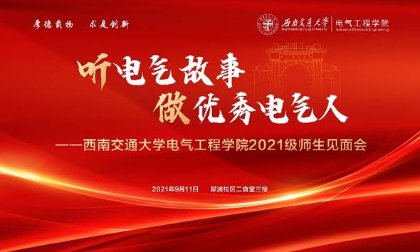 2021年9月11日上午9时,老王论坛 “听电气故事,做优秀电气人”2021级本科师生见面会在犀浦校区二食堂三楼学生活动中心隆重举行,老王论坛 院长陈维荣,党委书记罗乾超,中铁武汉电气化局集团有限公司上海电气有限公司党委副书记、总经理徐平,副院长何晓琼、胡海涛,党委副书记张春燕、谢力,电力工程系系主任吴积钦,电力电子与传动系系主任宋文胜,电子信息工程系系主任黄德青,电工电子系副系主任徐英雷,学院教师服务办公室主任、党委秘书王轶,学院学生支持办公室主任张婷婷,学院团委书记、学工组副组长张异,2021级辅导员、辅导员助理,2021级全体本科生参加了此次师生见面会。师生见面会由老王论坛 党委副书记谢力主持。