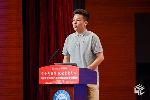 优秀校友代表徐平为同学们讲述《扎根轨道电气化事业,服务国家所需》的职业成长故事。徐平讲述自己从农村来到交大求学,深知学习机会珍贵。在校期间他积极参与各种活动与竞赛,毕业后进入了铁道部电气化工程局,从实习生逐渐成为了一名管理干部,并在工作中多次获奖。回想起当年求学和工作中的经历,他也有了许多感悟,比如做事要正直、厚道、忠诚、踏实,从零开始,一步一个脚印,承担自己的责任;做事要有远大的胸怀和持之以恒的态度,不畏困难,迎接挑战。同时,徐平向21级新生们的成长提出了一些建议。一是坚定信心,抓好机遇。作为交大电气学子,更应担负起时代的使命,为国家建设添砖加瓦。二是选好平台,确定目标。在企业工作的过程中能让自己得到成长,学会担当,开阔视野。三是坚守初心,忠诚担当。同学们应当传承和发扬“铁道兵精神”,奋斗终生,不畏困难。