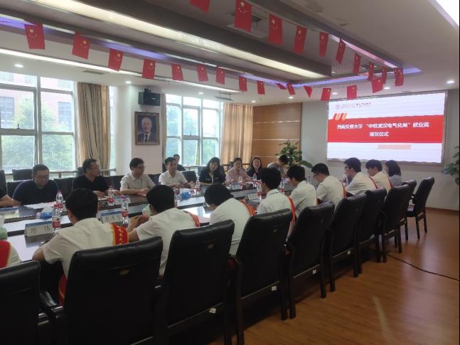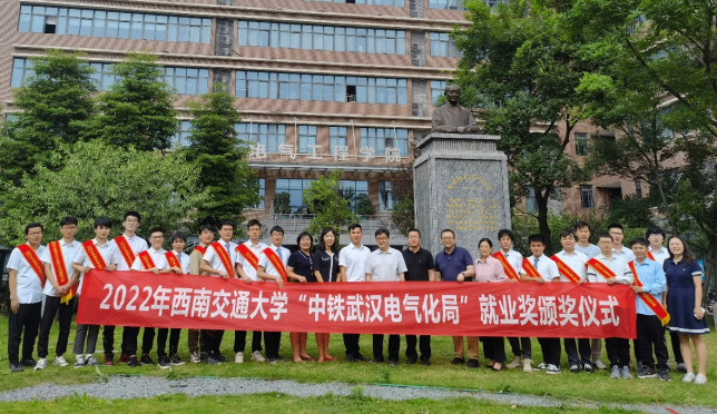 就业奖的设立代表中铁武汉电气化局对交大学生、电气学生的重视,是爱护人才珍惜人才的重要表现。高剑首先对学院这些年来对中铁武汉电气化局人才培养、引进工作的大力支持表示感谢,对获得就业奖的各位同学表示祝贺和欢迎;指出开展校企合作是新形势下中铁武汉电气化局发展进步的内在要求和双方实现共赢的战略举措;强调公司十分注重人才培养及团队建设,一直秉承着广纳人才、培养人才、善用人才、善待人才的人力资源策略,期待今后在火热的电气化建设现场,与大家促膝深谈,共商企业发展之路,共谋交通强国、助力民族复兴的宏图大计。