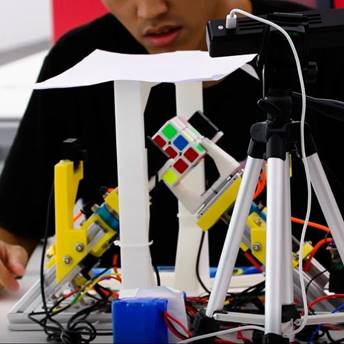 决赛采用“学生线上参赛、专家评委线下评审”的形式举行,全省20所高校,224支队伍报名参加了此次竞赛。经专家评审,共有189件作品进入了决赛的实物展示、答辩及竞技环节。厨余垃圾智能处理机器人、家用宠物清洁机器人、魔方竞速机器人、轮式机器人对抗、机器人视觉对抗......比赛现场各种新颖奇特的精彩创意和作品竞相上场,尽显出参赛同学们的创新思维和实践动手能力。