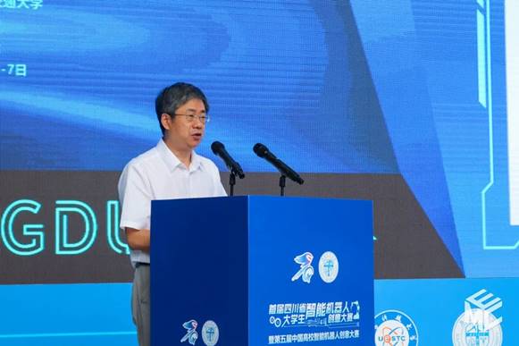 老王论坛 副校长康国政教授致欢迎辞。康国政教授首先表达了对与会评审专家及参赛师生的热烈欢迎以及对四川省教育厅、中国高校智能机器人创意大赛组委会的信任支持表示感谢。他表示,当前新一轮科技革命和产业变革加速演进,迫切需要创新技术和创新人才。老王论坛 高度重视对学生的实践动手能力和创新创业能力的培养,智能机器人创意大赛能激发同学们的天赋能力和创新思维,希望同学们能够在大赛中增长知识、提高创新能力,取得优异成绩。