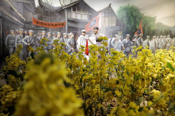 川军抗战馆展现30万川军出川抗战、300万壮丁奔赴前线的历史史实。通过采用复原场景、沙盘模型、雕塑等多种形式,生动展现了“无川不成军”的含义,带给各位同学视觉的冲击和爱国主义精神的启迪。