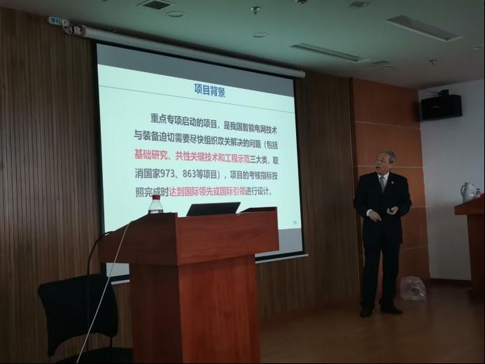 随后,刘建明教授重点介绍了国家智能电网重点专项研究现状及部分案例,通过三角层的形式介绍了智能电网技术及装备的发展战略,并指出,在基础研究任务上侧重于解决科学问题,重点在于扩大国际影响力,促进下一步发展目标和重大科技项目的培育;在重大关键共性技术任务上争取在国际领跑,促进下一步示范工程;在典型应用示范任务上争取做成世界上第一个可推广、可复制的首台(套)工程。刘教授分别对2016年、2017年、2018年智能电网技术与装备重点专项基本情况以及2020年重点研发计划项目进行了介绍,并针对有关项目的案例,通过视频介绍了其技术要领及标志性成果,随后相继介绍了智能配电房、智慧路灯、江苏同里新能源小镇、压缩空气储能等研究成果和案例。