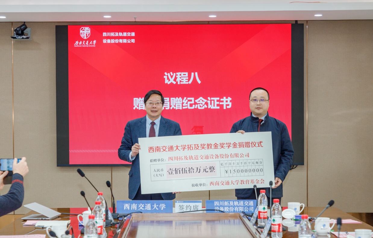 我校与四川拓及轨道交通设备股份有限公司签署校企合作协议暨奖教金奖学金捐赠协议