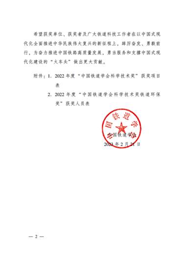 学院科研成果获2022年度“中国铁道学会科学技术奖”