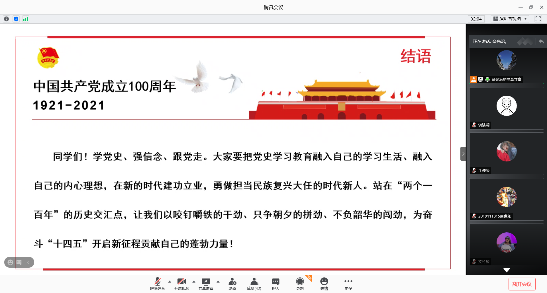 在学院团委的组织下,全院共112个团支部,3600余名团员通过线上线下结合的方式共同参与本次主题教育学习,通过PPT、视频资料等多种形式,全体团员一起回顾我们伟大的党走过的100年光辉岁月。