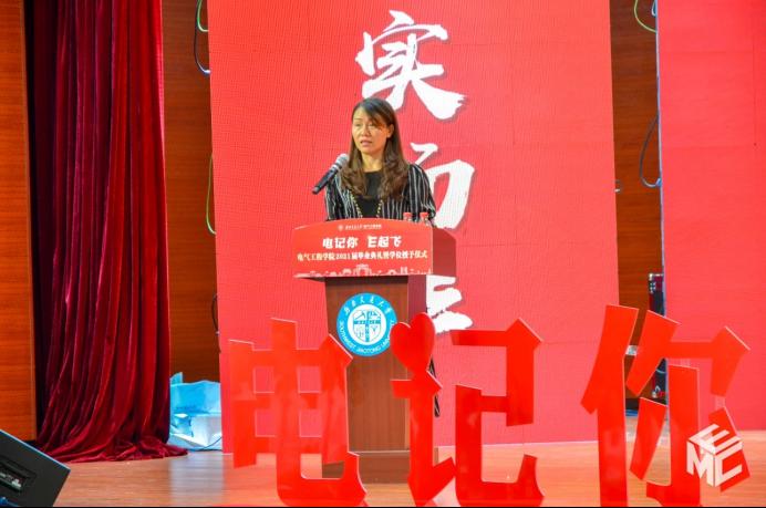 Students of the 2017 Class, Wang Yan, Wang Yiyun, Wang Haowen and Wang Xueqi spoke on behalf of the graduates, expressing their deep gratitude to the faculty members, academic staff and all those who had helped them during the four years of care and love. After that, Zhao Zuwen, a representative of the graduates, gave a gift to the college, wishing the prosperous development of the electrical business.