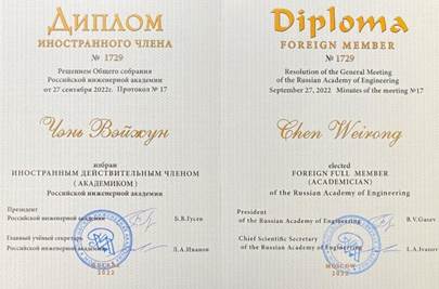 Congratulations to Professor Weirong Chen as A Foreign Member of The Russian Academy of Engineering