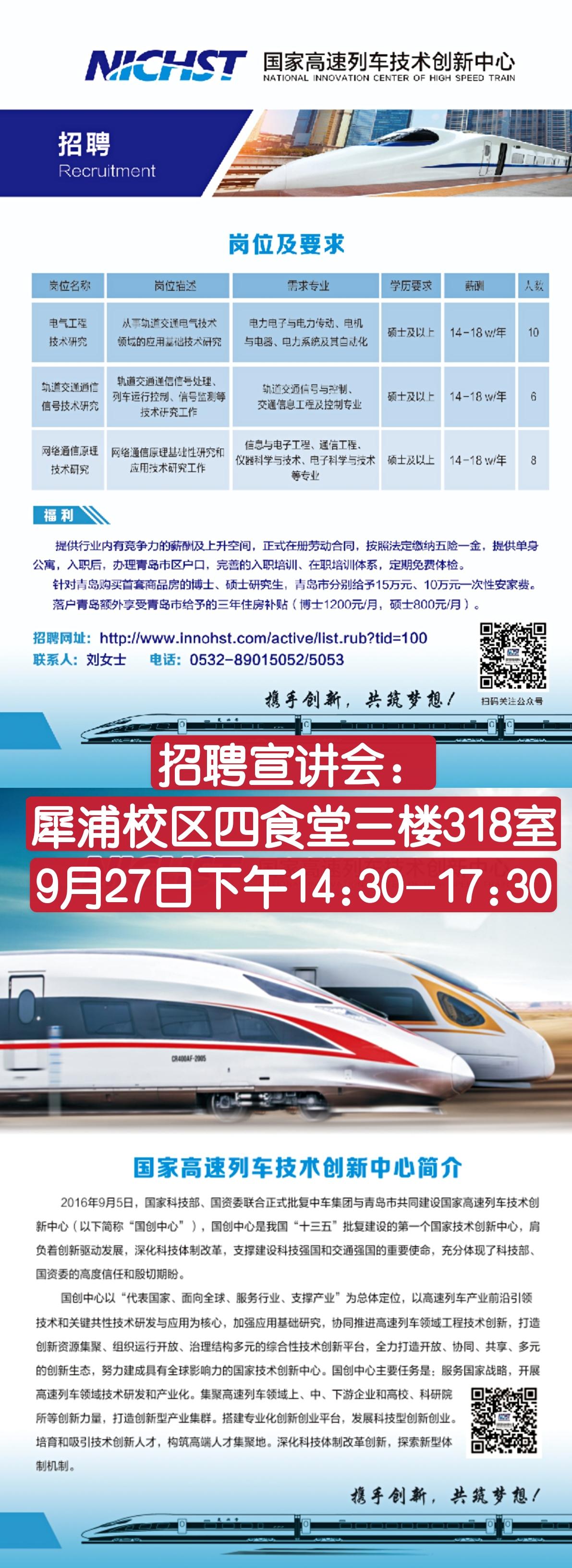 国家高速列车技术创新中心招聘简章2021