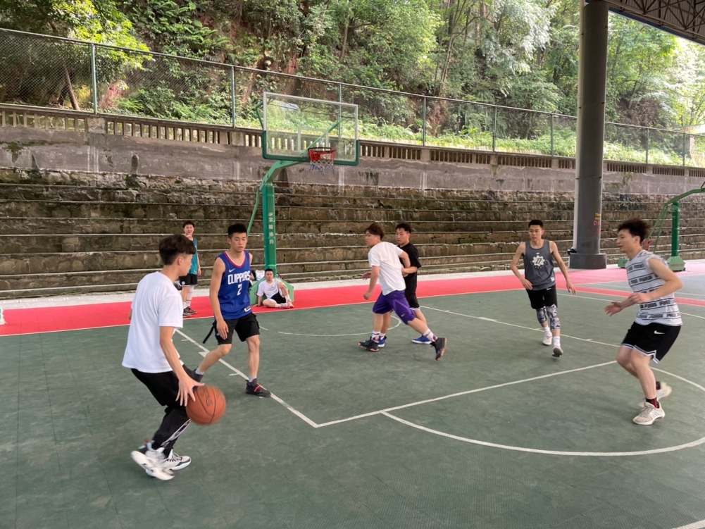 下午三点半,在风雨棚组织了两校区友谊篮球赛,双方队员你来我往,激烈交锋,都发挥出了最好的成绩,加强了同学们的团结精神,也增进了两校区同学们的友谊。