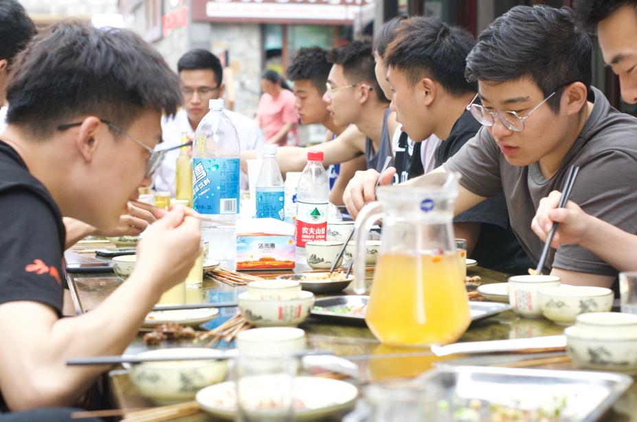 晚上六点,同学们乘坐校车在黄湾小镇举行了聚餐,在活跃的气氛中回忆在峨眉校区学习生活的各种趣事。