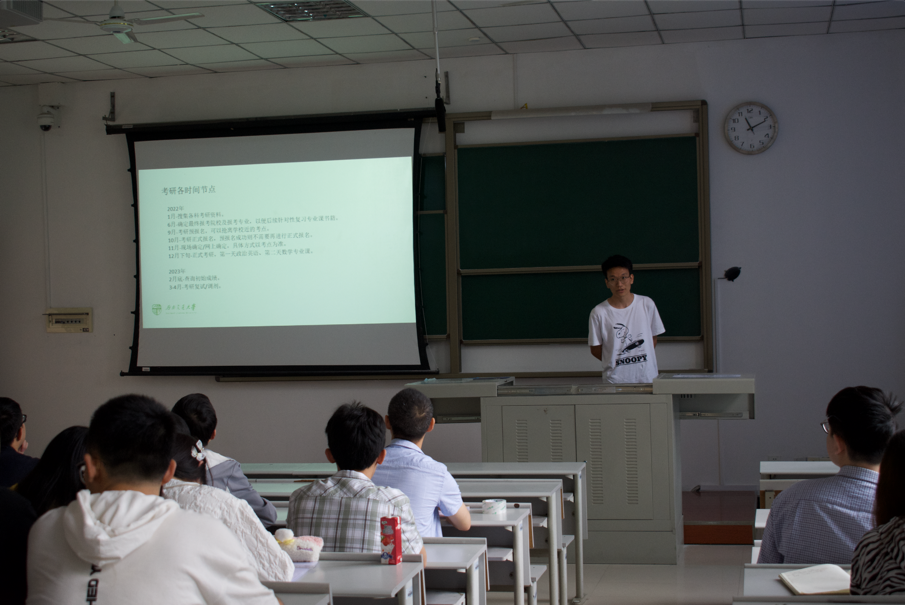 首先,黄建新老师介绍了赴峨眉校区参与活动的老师和同学。在朱旭程同学的主持下,分别由余青松同学,曹浔诚同学,刘涛同学和朱旭程同学向峨眉校区的同学分享介绍了考研、出国留学、保研还有在犀浦校区的学习生活。互动环节中,同学们也向主讲人提出了很多学习生活中遇到的问题,收获颇丰。