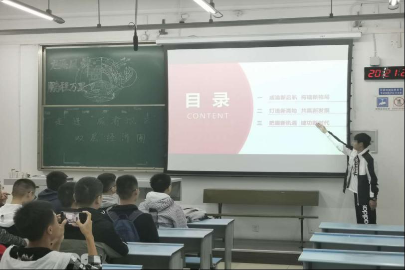 本次团课通过自主学习、集体宣讲的方式,使得同学们对成渝双城经济圈的国家战略进行了充分了解,并让大家意识到了青年人肩上的时代责任,激发了报国热情,顺利取得了成功。