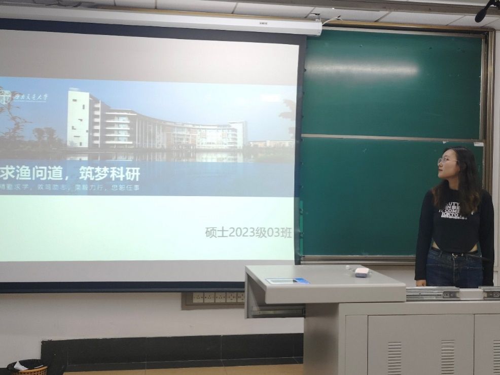 为提高同学们的科研表达能力,锻炼逻辑思维能力并培养一定的抗挫折能力,9月21日傍晚,硕士2023-03班的全体同学齐聚九里校区4321教室,开展以“求渔问道,筑梦科研”为主题的班级活动。
