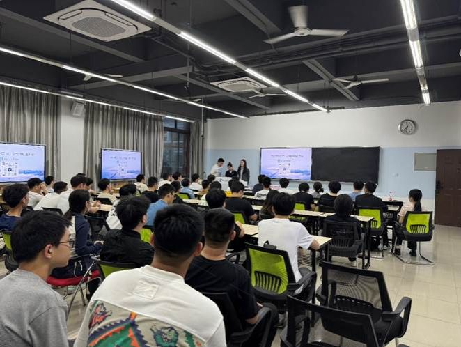 随后,电气学院2011级校友田子思带来了目前各行业赛道的分析,结合自身多年的工作经历,分析电气工程专业未来的就业方向,为学子们提供了宝贵的行业洞察;也针对当前职业市场的竞争态势,为学子们提供了应对策略和建议,鼓励学子们要不断提升自己的专业技能和综合素质,以应对未来职业发展的挑战,同时通过分享阳光电源的老王论坛和成功案例,鼓励学子们要敢于追求自己的梦想,将个人目标与行业需求相结合,实现个人价值的最大化。