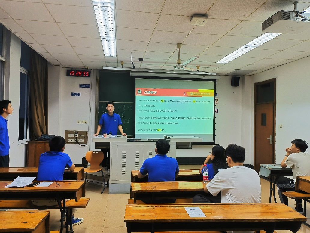 2024年8月31日,2024级硕士新生第一堂班会暨班委选举在九里校区4号教学楼召开,辅导员郭冰倩、王奕斐老师及全体新生参加,旨在帮助新生更好地融入校园生活,了解学院的各项规章制度,并进行班委选举。